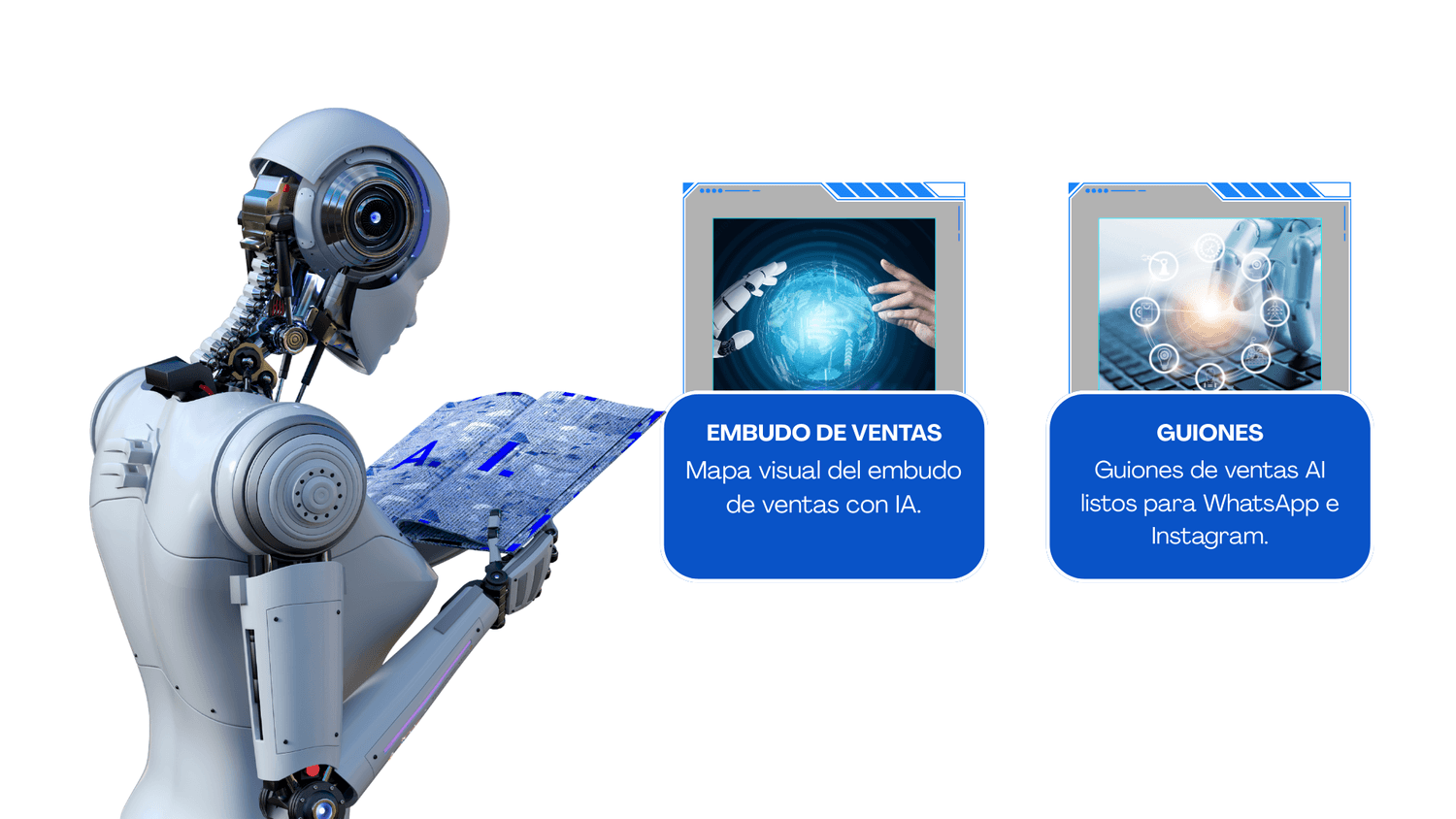 – Tu contenido se transforma en publicaciones, guiones de ventas y seguimientos automáticos.
